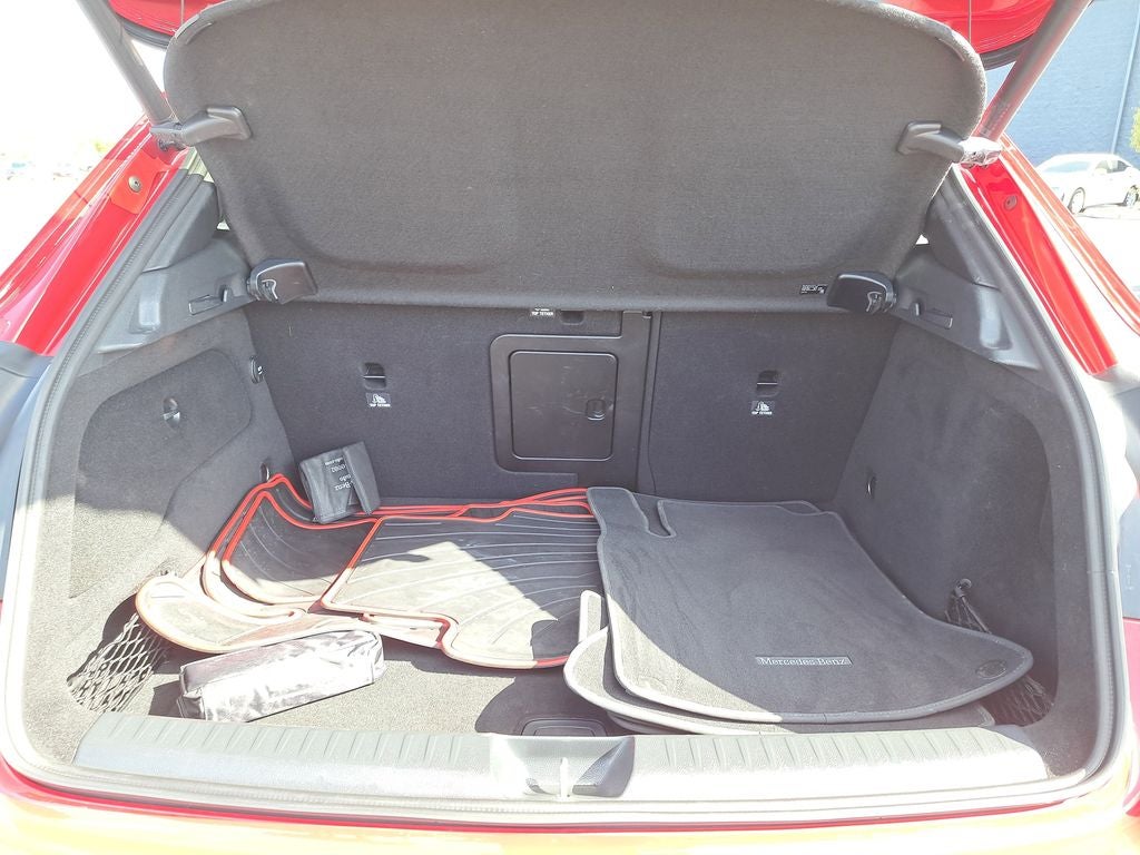 THIS VEHICLE HAS THE FOLLOWING FEATURES AND OPTIONS: GLA 250, 4D Sport Utility, 2.0L I4 DI Turbocharged, 7-Speed Automatic, FWD, Red, Black Leatherette, 18 Twin 5-Spoke Alloy Wheels, Fully automatic headlights, Memory seat, Power Liftgate, Power passenger seat, Premium audio system: COMAND®, Radio: Audio 20 CD w/Garmin Navigation Pre-Wiring, Single CD Player, Steering wheel mounted audio controls, Telescoping steering wheel, 4-Wheel Disc Brakes, 4.60 Axle Ratio, 8 Speakers, ABS brakes, Air Conditioning, Alloy wheels, AM/FM radio, Automatic temperature control, Brake assist, Bumpers: body-color, CD player, Child-Seat-Sensing Airbag, Delay-off headlights, Driver door bin, Driver vanity mirror, Dual front impact airbags, Dual front side impact airbags, Electronic Stability Control, Emergency communication system, Four wheel independent suspension, Front anti-roll bar, Front Bucket Seats, Front Center Armrest, Front dual zone A/C, Front fog lights, Front Power Seats, Front reading lights, Heated door mirrors, Illuminated entry, Knee airbag, Low tire pressure warning, MB-Tex Upholstery, Occupant sensing airbag, Outside temperature display, Overhead airbag, Overhead console, Panic alarm, Passenger door bin, Passenger vanity mirror, Power door mirrors, Power driver seat, Power steering, Power windows, Radio data system, Rain sensing wipers, Rear anti-roll bar, Rear fog lights, Rear reading lights, Rear seat center armrest, Rear window defroster, Remote keyless entry, Roof rack: rails only, Security system, Speed control, Speed-sensing steering, Split folding rear seat, Spoiler, Tachometer, Tilt steering wheel, Traction control, Trip computer, Turn signal indicator mirrors, Variably intermittent wipers, and Weather band radio.