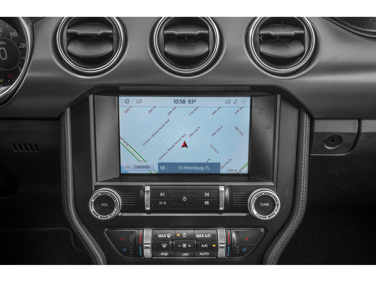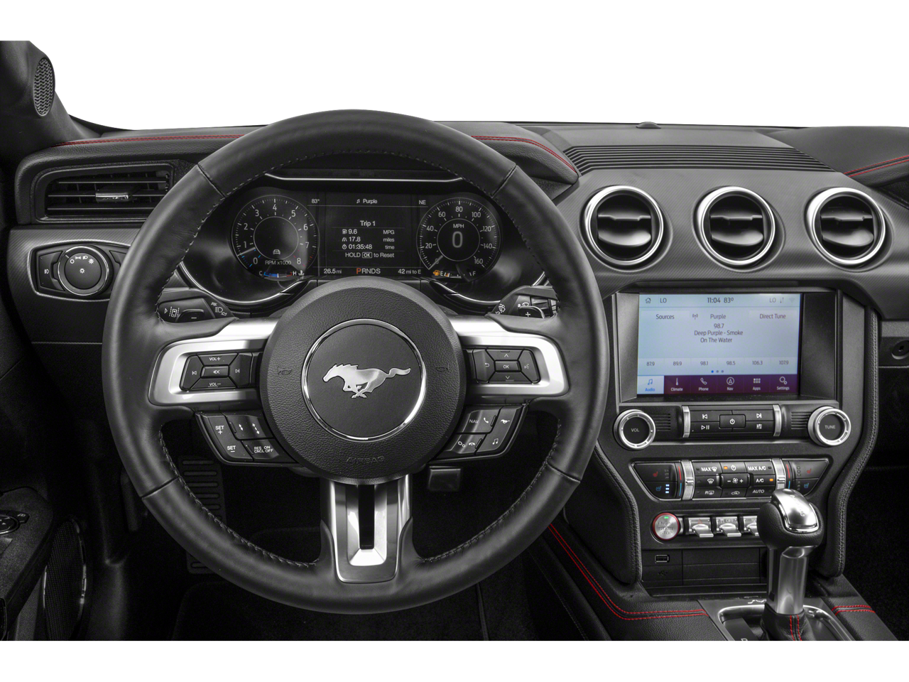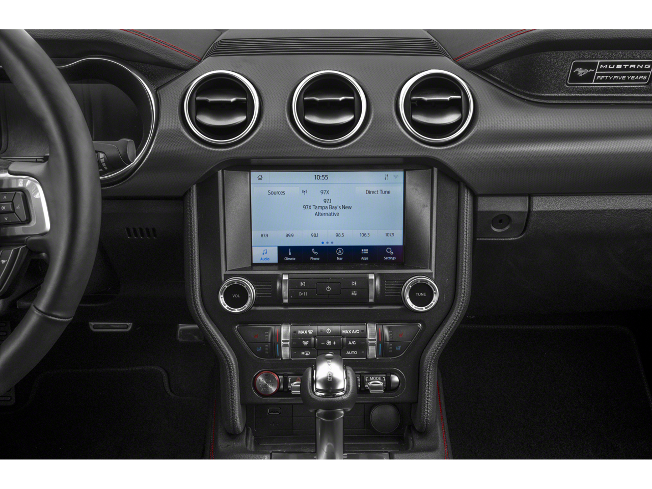 This vehicle includes the following Features: 4-Wheel Disc Brakes, 9 Speakers, ABS brakes, Air Conditioning, Alloy wheels, AM/FM radio: SiriusXM, AM/FM Stereo, AppLink/Apple CarPlay and Android Auto, Auto-dimming Rear-View mirror, Automatic temperature control, Brake assist, Bumpers: body-color, Climate Controlled Heated/Cooled Front Seats, Compass, Convertible roof lining, Delay-off headlights, Driver door bin, Driver vanity mirror, Dual front impact airbags, Dual front side impact airbags, Electronic Stability Control, Emergency communication system: 911 Assist, Exterior Parking Camera Rear, Four wheel independent suspension, Front anti-roll bar, Front Bucket Seats, Front Center Armrest, Front dual zone A/C, Front fog lights, Front reading lights, Fully automatic headlights, Garage door transmitter, Glass rear window, Heated door mirrors, Heated front seats, Illuminated entry, Knee airbag, Leather Bucket Seats, Leather Shift Knob, Low tire pressure warning, Occupant sensing airbag, Outside temperature display, Overhead console, Panic alarm, Passenger door bin, Passenger vanity mirror, Power convertible roof, Power door mirrors, Power driver seat, Power passenger seat, Power steering, Power windows, Radio data system, Rear anti-roll bar, Rear window defroster, Remote keyless entry, Security system, SiriusXM Radio, Speed control, Speed-sensing steering, Speed-Sensitive Wipers, Spoiler, Steering wheel mounted audio controls, SYNC 3 Communications & Entertainment System, Tachometer, Telescoping steering wheel, Tilt steering wheel, Traction control, Trip computer, Turn signal indicator mirrors, Variably intermittent wipers, Ventilated front seats, Voltmeter, and Wheels: 18 x 8 Machined-Face Aluminum.
