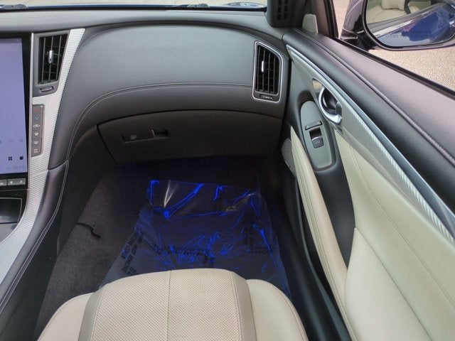 This vehicle includes the following Features: Q60 Red Sport 400, 2D Coupe, 3.0L V6, 7-Speed Automatic, AWD, Iridium Blue, Gallery White Leather, Navigation system: INFINITI InTouch Navigation, Wheels: 20 Aluminum-Alloy RED SPORT 400, 13 Speakers, 4-Wheel Disc Brakes, ABS brakes, Adaptive suspension, Air Conditioning, Alloy wheels, AM/FM radio: SiriusXM, Auto tilt-away steering wheel, Auto-dimming door mirrors, Auto-dimming Rear-View mirror, Automatic temperature control, Brake assist, Bumpers: body-color, CD player, Compass, Delay-off headlights, Driver door bin, Driver vanity mirror, Dual front impact airbags, Dual front side impact airbags, Electronic Stability Control, Four wheel independent suspension, Front anti-roll bar, Front Bucket Seats, Front Center Armrest, Front dual zone A/C, Front fog lights, Front reading lights, Fully automatic headlights, Garage door transmitter: HomeLink, Heated door mirrors, Heated front seats, Heated Front Sport Seats, Heated steering wheel, Illuminated entry, Leather Shift Knob, Leather steering wheel, Literature Kit, Low tire pressure warning, Memory seat, Occupant sensing airbag, Outside temperature display, Overhead airbag, Overhead console, Panic alarm, Passenger door bin, Passenger vanity mirror, Power door mirrors, Power driver seat, Power moonroof, Power passenger seat, Power steering, Power windows, Radio data system, Radio: AM/FM HD Radio, Rear anti-roll bar, Rear window defroster, Remote keyless entry, Security system, Semi-Aniline Leather-Appointed Seating Surfaces, Silver Optic Fiber Interior Trim, Speed control, Speed-sensing steering, Speed-Sensitive Wipers, Steering wheel memory, Steering wheel mounted audio controls, Tachometer, Telescoping steering wheel, Tilt steering wheel, Traction control, Trip computer, Turn signal indicator mirrors, and Variably intermittent wipers.