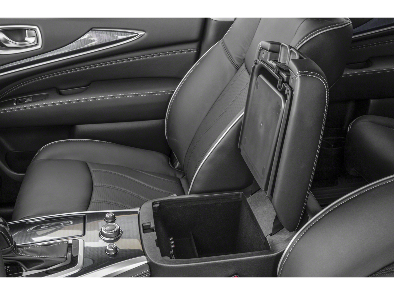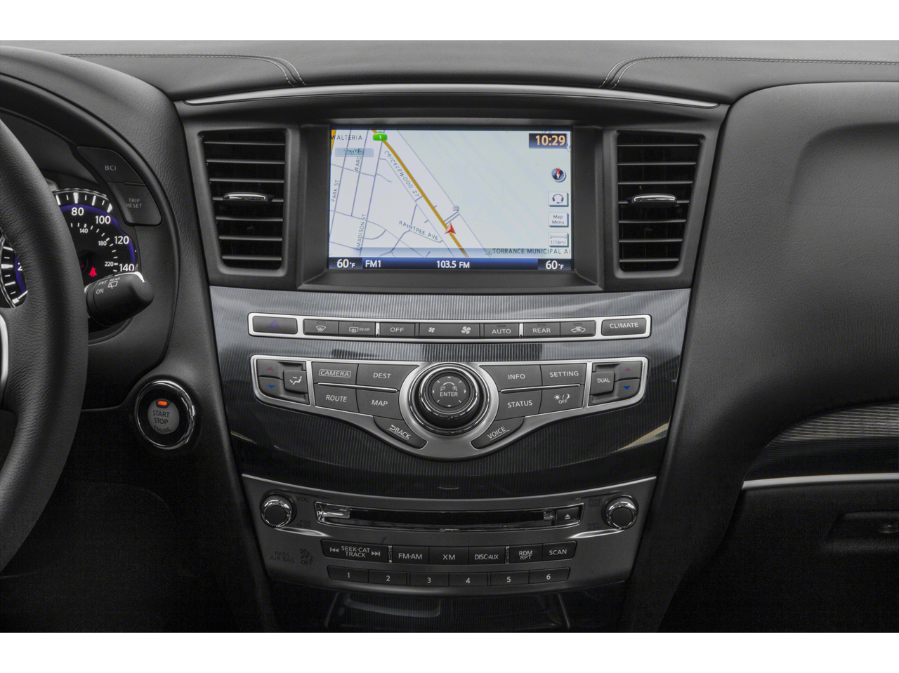- Radio: AM/FM/CD/DVD w/Bose Premium Audio System -inc: 13 speakers, MP3 playback capability, Radio Data System (RDS), speed-sensitive volume control, INFINITI controller, auxiliary audio/video input jacks in front center console, 6 USB charging ports (charge only): front center console, illuminated (2X - 1 type A and 1 type C), rear center console-mounted, illuminated (2X - 1 type A and type C) non theater only and 3rd row (2X - type A), INFINITI InTouch w/8" WVGA color touch-screen vehicle information display, Bluetooth hands-free phone system, hands-free text messaging assistant, streaming audio via Bluetooth wireless technology, INFINITI voice recognition for audio, Bluetooth and vehicle information including music search by voice, 2 USB ports for iPod and compatible devices, HD Radio, SiriusXM satellite radio w/3-month complimentary trial and SiriusXM Travel Link w/4 year complimentary trial access to weather, fuel prices, stock prices, sports scores and movie times