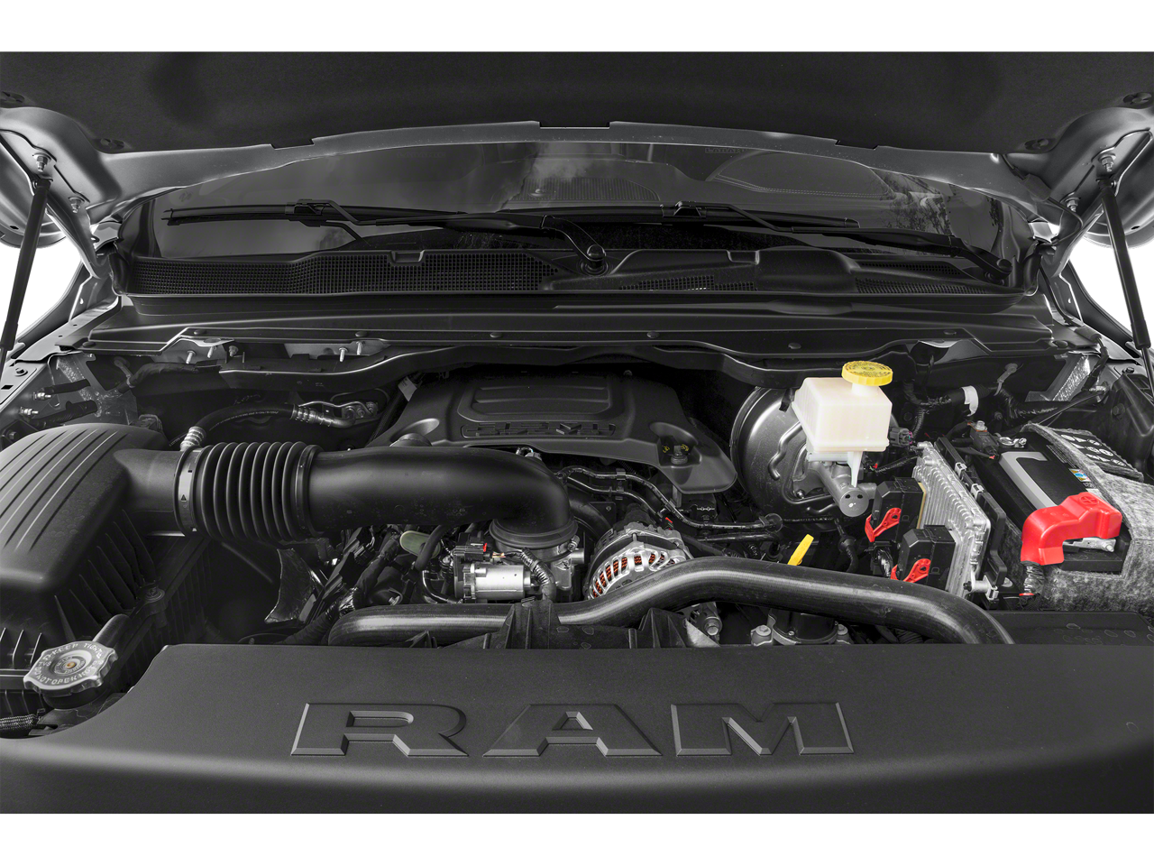 - ENGINE: 5.7L V8 HEMI MDS VVT ETORQUE -inc: Active Noise Control System Heavy Duty Engine Cooling GVWR: 7 100 lbs Dual Rear Exhaust w/Bright Tips Hemi Badge 23 Gallon Fuel Tank 18"" Aluminum Spare Wheel