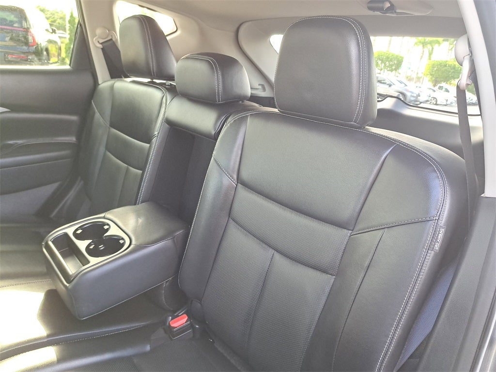 THIS VEHICLE HAS THE FOLLOWING FEATURES AND OPTIONS: Nissan Certified Certified, CVT with Xtronic, AWD, Memory seat, Navigation system: NissanConnect Navigation, NissanConnect featuring Apple CarPlay and Android Auto, Power Liftgate, Spoiler, Steering wheel mounted audio controls, Turn signal indicator mirrors, Wheels: 20 Machined Aluminum-Alloy, 11 Speakers, 4-Wheel Disc Brakes, 4.667 Axle Ratio, ABS brakes, Air Conditioning, Alloy wheels, AM/FM radio: SiriusXM, AM/FM/CD/MP3/WMA Audio System, Auto High-beam Headlights, Auto-dimming Rear-View mirror, Automatic temperature control, Blind Spot Warning, Brake assist, Bumpers: body-color, Carpeted Floor Mats & Carpeted Cargo Mat, CD player, Child-Seat-Sensing Airbag, Compass, Delay-off headlights, Driver door bin, Driver vanity mirror, Dual front impact airbags, Dual front side impact airbags, Electronic Stability Control, Exterior Parking Camera Rear, Four wheel independent suspension, Front anti-roll bar, Front Bucket Seats, Front Center Armrest, Front dual zone A/C, Front fog lights, Front reading lights, Fully automatic headlights, Garage door transmitter: HomeLink, Heated door mirrors, Heated Front Bucket Seats, Heated front seats, Heated rear seats, Heated steering wheel, Illuminated entry, Knee airbag, Leather Shift Knob, Leather-Appointed Seat Trim, Low tire pressure warning, Occupant sensing airbag, Outside temperature display, Overhead airbag, Overhead console, Panic alarm, Passenger door bin, Passenger vanity mirror, Power door mirrors, Power driver seat, Power passenger seat, Power steering, Power windows, Radio data system, Rear anti-roll bar, Rear Bumper Protector, Rear reading lights, Rear seat center armrest, Rear side impact airbag, Rear window defroster, Rear window wiper, Remote keyless entry, Roof rack: rails only, Roof Rail Cross Bars, Security system, Speed control, Speed-sensing steering, Speed-Sensitive Wipers, Splash Guards, Split folding rear seat, Tachometer, Telescoping steering wheel, Tilt steering wheel, Traction control, Trip computer, and Variably intermittent wipers.