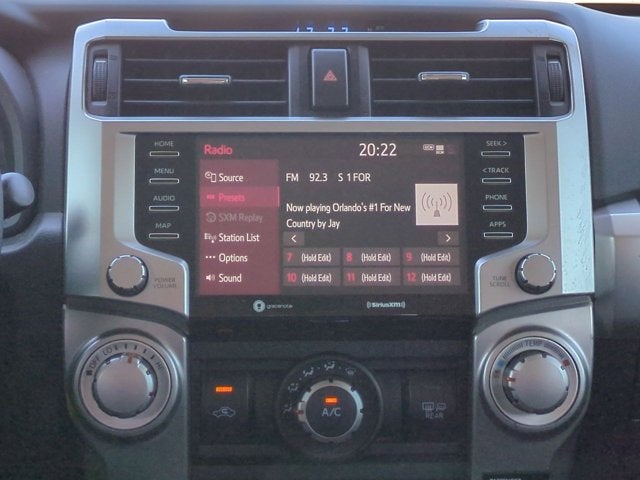 This vehicle includes the following Features: 4Runner SR5, 4D Sport Utility, 4.0L V6 SMPI DOHC, 5-Speed Automatic with Overdrive, 4WD, Super White, Black/Graphite w/Fabric Seat Trim, 17 x 7.0 6-Spoke Alloy Wheels, ABS brakes, Active Cruise Control, Alloy wheels, Electronic Stability Control, Heated door mirrors, Illuminated entry, Low tire pressure warning, Remote keyless entry, Traction control, 3.727 Axle Ratio, 4-Wheel Disc Brakes, 8 Speakers, Air Conditioning, AM/FM radio: SiriusXM, Anti-whiplash front head restraints, Apple CarPlay/Android Auto, Auto High-beam Headlights, Brake assist, Bumpers: body-color, Driver door bin, Driver vanity mirror, Dual front impact airbags, Dual front side impact airbags, Emergency communication system: Safety Connect with 1-year trial, Exterior Parking Camera Rear, Front anti-roll bar, Front Bucket Seats, Front Center Armrest, Front fog lights, Front reading lights, Front wheel independent suspension, Knee airbag, Leather Shift Knob, Leather steering wheel, Low Fabric Seat Trim, Occupant sensing airbag, Outside temperature display, Overhead airbag, Overhead console, Panic alarm, Passenger door bin, Passenger vanity mirror, Power door mirrors, Power driver seat, Power steering, Power windows, Radio: Audio, Rear anti-roll bar, Rear seat center armrest, Rear window defroster, Rear window wiper, Roof rack: rails only, Security system, Speed control, Speed-sensing steering, Split folding rear seat, Spoiler, Steering wheel mounted audio controls, Tachometer, Telescoping steering wheel, Tilt steering wheel, Trip computer, and Variably intermittent wipers.