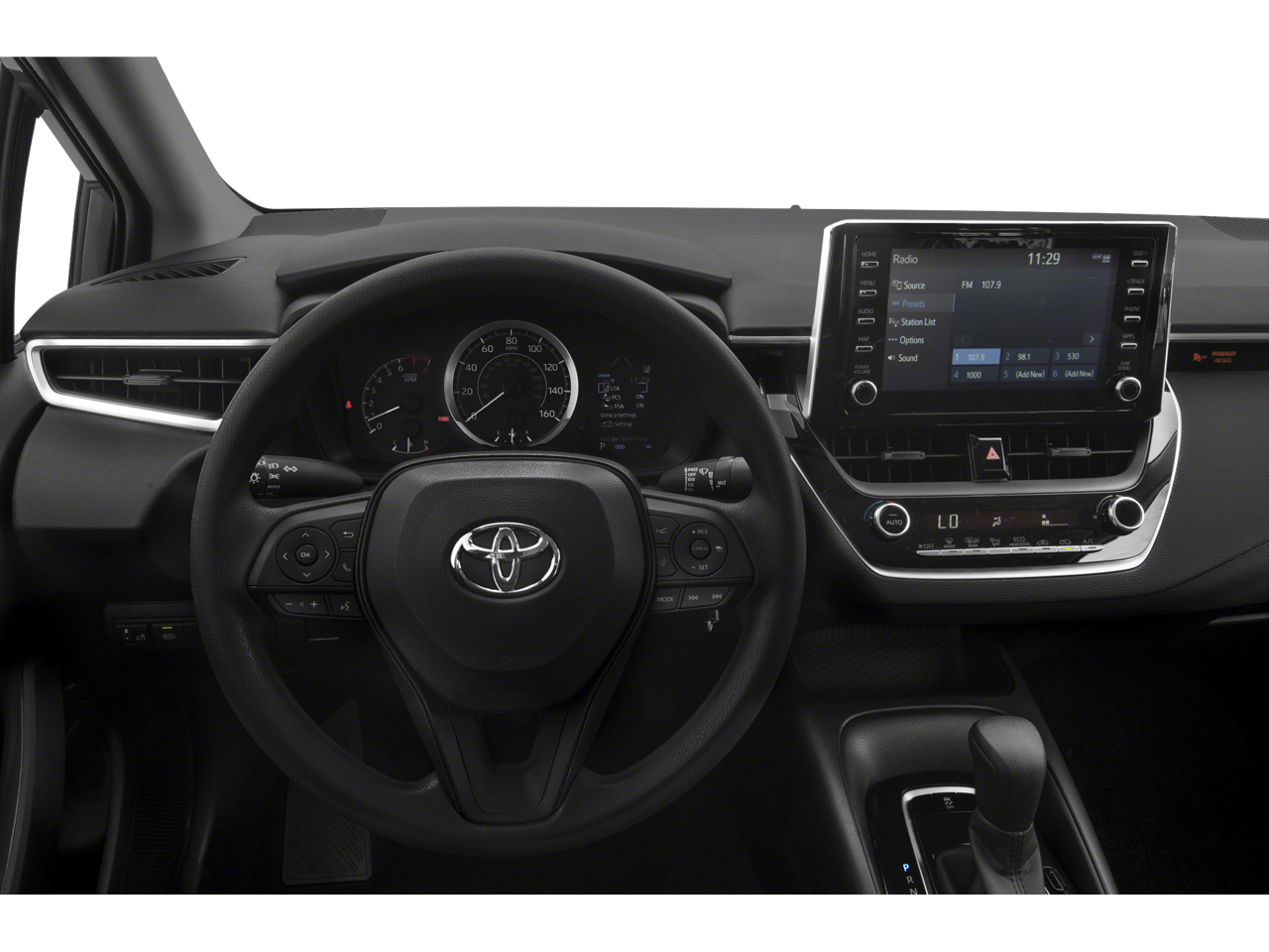 THIS VEHICLE INCLUDES THE FOLLOWING FEATURES AND OPTIONS: Corolla LE, Ford Blue Advantage: Blue Certified Certified, 4-Wheel Disc Brakes, 6 Speakers, ABS brakes, Air Conditioning, AM/FM radio: SiriusXM, Apple CarPlay, Auto High-beam Headlights, Automatic temperature control, Brake assist, Bumpers: body-color, Delay-off headlights, Driver door bin, Driver vanity mirror, Dual front impact airbags, Dual front side impact airbags, Electronic Stability Control, Emergency communication system: Safety Connect with 3-year trial, Exterior Parking Camera Rear, Four wheel independent suspension, Front anti-roll bar, Front Bucket Seats, Front Center Armrest, Front reading lights, Fully automatic headlights, Illuminated entry, Knee airbag, Low tire pressure warning, Occupant sensing airbag, Outside temperature display, Overhead airbag, Panic alarm, Passenger door bin, Passenger vanity mirror, Power door mirrors, Power steering, Power windows, Premium Fabric Seat Trim, Radio data system, Radio: Audio AM/FM w/Navigation, Rear anti-roll bar, Rear seat center armrest, Rear window defroster, Remote keyless entry, Security system, Speed control, Split folding rear seat, Steering wheel mounted audio controls, Tachometer, Telescoping steering wheel, Tilt steering wheel, Traction control, Trip computer, Variably intermittent wipers, and Wheels: 16 Wide Vent Steel.