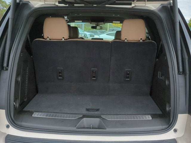 This vehicle includes the following Features: Preferred Equipment Group 1LZ (1st & 2nd Row Color-Keyed Carpeted Floor Mats, 2 USB Data Ports, 2-Speed Active Electronic AutoTrac Transfer Case, 3rd Row 60/40 Power-Folding Split-Bench Seat, Auto-Dimming Inside Rear-View Mirror, Automatic Heated Steering Wheel, Bright Front & Rear Door Sill Plates, Chrome Door Handles w/Body-Color Strip, Chrome Mirror Caps, Color-Keyed Carpeting Floor Covering, Driver & Front Outboard Passenger Airbags, Dual Exhaust System, Enhanced Driver Information Center, Floor Console w/Storage Area, Front & Rear Park Assist, Hands-Free Rear Power Programmable Liftgate, HD Radio, Heated 2nd Row Outboard Seats, Hill Descent Control, Infotainment Display, Lane Change Alert w/Side Blind Zone Alert, Lane Keep Assist w/Lane Departure Warning, Leather-Wrapped Steering Wheel, LED Daytime Running Lamps, Memory Settings, Outside Heated Power-Adjustable Mirrors, Power Release 2nd Row Bucket Seats, Power Tilt & Telescopic Steering Column, Rear Cross Traffic Alert, Remote Start, Safety Alert Seat, SiriusXM NavTraffic, SiriusXM Radio w/360L, and Universal Home Remote), 4WD, Jet Black/Maple Sugar Leather, 10 Speakers, 12-Way Power Driver & Passenger Seat Adjusters, 20 x 9 Polished Aluminum Wheels, 3.23 Rear Axle Ratio, 3rd row seats: split-bench, 4-Wheel Disc Brakes, ABS brakes, Adaptive suspension, Air Conditioning, Alloy wheels, AM/FM radio: SiriusXM with 360L, Apple CarPlay/Android Auto, Auto High-beam Headlights, Auto-dimming door mirrors, Auto-dimming Rear-View mirror, Auto-leveling suspension, Automatic temperature control, Bose 10-Speaker Centerpoint Surround Audio Sys Ft, Brake assist, Bumpers: body-color, Compass, Delay-off headlights, Driver door bin, Driver vanity mirror, Dual front impact airbags, Dual front side impact airbags, Electronic Stability Control, Emergency communication system: OnStar and Chevrolet connected services capable, Four wheel independent suspension, Front anti-roll bar, Front Bucket Seats, Front Center Armrest, Front dual zone A/C, Front High-Back Reclining Bucket Seats, Front reading lights, Fully automatic headlights, Garage door transmitter, Heated & Ventilated Driver & Front Passenger Seats, Heated door mirrors, Heated Driver & Front Passenger Seats, Heated front seats, Heated rear seats, Heated steering wheel, Illuminated entry, Leather steering wheel, Low tire pressure warning, Magnetic Ride Control Suspension, Memory seat, Navigation System, Occupant sensing airbag, Outside temperature display, Overhead airbag, Overhead console, Panic alarm, Passenger door bin, Passenger vanity mirror, Perforated