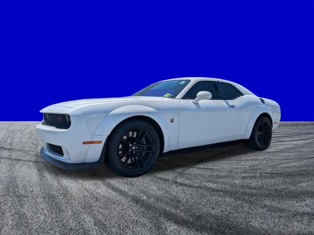 THIS VEHICLE INCLUDES THE FOLLOWING FEATURES AND OPTIONS: Quick Order Package 23N R/T Scat Pack Widebody (Adaptive Damping Suspension, Brembo 6-Pot Fixed Front Caliper Brakes, Flat-Bottom Steering Wheel, Performance Shift Indicator, Wheels: 20 x 11.0 Devil's Rim Aluminum, Widebody Competition Suspension, and Widebody Fender Flares), Shaker Package (Bee Fender Badge, Dash Plaque, Gloss Black I/P Cluster Trim Rings, MOPAR Shaker Hood, MOPAR Shaker Intake, Shaker Mounted 392 HEMI Badge, Underhood Shaker Decal, and White Face Instrument Cluster), Challenger R/T Scat Pack Widebody, Ford Blue Advantage: Blue Certified Certified, SRT HEMI 6.4L V8, White, GPS Navigation, 1-Yr SiriusXM Guardian Trial, 230MM Rear Axle, 4-Wheel Disc Brakes, 4G LTE Wi-Fi Hot Spot, 5-Year SiriusXM Traffic Service, 5-Year SiriusXM Travel Link Service, 6 Speakers, 8.4 Touchscreen Display, ABS brakes, Air Conditioning, Alloy wheels, AM/FM radio: SiriusXM, Anti-whiplash front head restraints, Apple CarPlay, Apple CarPlay/Android Auto, Auto-dimming Rear-View mirror, Automatic temperature control, Brake assist, Bumpers: body-color, Compass, Delay-off headlights, Driver door bin, Driver vanity mirror, Dual front impact airbags, Dual front side impact airbags, Electronic Stability Control, Emergency communication system: SiriusXM Guardian, For Details, Visit DriveUconnect.com, Four wheel independent suspension, Front anti-roll bar, Front Bucket Seats, Front Center Armrest, Front dual zone A/C, Front fog lights, Front reading lights, Fully automatic headlights, Garage door transmitter, Google Android Auto, GPS Antenna Input, HD Radio, Heated door mirrors, Heated front seats, Heated steering wheel, Illuminated entry, Integrated Center Stack Radio, Integrated Voice Command w/Bluetooth®, Leather Shift Knob, Low tire pressure warning, Media Hub (2 USB, AUX), Outside temperature display, Overhead airbag, Overhead console, Panic alarm, ParkView Rear Back-Up Camera, Passenger door bin, Passenger vanity mirror, Power door mirrors, Power driver seat, Power steering, Power windows, Radio data system, Radio: Uconnect 4C Nav w/8.4 Display, Radio: Uconnect 4C w/8.4 Display, Rear anti-roll bar, Rear reading lights, Rear seat center armrest, Rear window defroster, Remote keyless entry, Rhombi 2-Pc Wheel Center Cap, Scat Pack Logo Houndstooth Seat, Security system, Shark Fin Antenna, SiriusXM Satellite Radio, SiriusXM Traffic Plus, SiriusXM Travel Link, Speed control, Speed-sensing steering, Split folding rear seat, Spoiler, Sport steering wheel, Steering wheel mounted audio controls, Tachometer, Telescoping steering wheel, Tilt steering wheel, Traction control, Trip computer, USB Host Flip, Variably intermittent wipers, Wheels: 20 x 11 Carbon Black Aluminum, and Wheels: 20 x 9 Lo Gloss Granite Crystal.