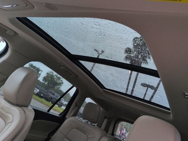 THIS VEHICLE INCLUDES THE FOLLOWING FEATURES AND OPTIONS: Equipment Group 200A, Lincoln Co-Pilot360 1.5 Plus (Active Park Assist 2.0, Evasive Steering Assist, Intelligent Adaptive Cruise Control, and Reverse Brake Assist), 14 Speakers, 3.58 Axle Ratio, 3rd row seats: split-bench, 4-Wheel Disc Brakes, ABS brakes, Air Conditioning, Alloy wheels, AM/FM radio: SiriusXM, Audio memory, Auto High-beam Headlights, Auto-dimming door mirrors, Auto-dimming Rear-View mirror, Automatic temperature control, Brake assist, Bumpers: body-color, Compass, Delay-off headlights, Driver door bin, Driver vanity mirror, Dual front impact airbags, Dual front side impact airbags, Electronic Stability Control, Emergency communication system, Four wheel independent suspension, Front anti-roll bar, Front Bucket Seats, Front Center Armrest, Front dual zone A/C, Front fog lights, Front reading lights, Fully automatic headlights, Garage door transmitter, Hands-Free Liftgate Delete, Heated door mirrors, Heated front seats, HVAC memory, Illuminated entry, Knee airbag, Leather steering wheel, Low tire pressure warning, Memory seat, Navigation System, Occupant sensing airbag, Outside temperature display, Overhead airbag, Overhead console, Panic alarm, Passenger door bin, Passenger vanity mirror, Power door mirrors, Power driver seat, Power Liftgate, Power moonroof: Panoramic Vista Roof, Power passenger seat, Power steering, Power windows, Premium Lthr Heated/Ventilated Fnt Captain's Chairs, Radio data system, Radio: Revel AM/FM Audio System w/14 Speakers, Rain sensing wipers, Rear air conditioning, Rear anti-roll bar, Rear audio controls, Rear dual zone A/C, Rear reading lights, Rear window defroster, Rear window wiper, Remote keyless entry, Security system, SiriusXM Radio, Speed control, Speed-Sensitive Wipers, Split folding rear seat, Spoiler, Steering wheel memory, Steering wheel mounted A/C controls, Steering wheel mounted audio controls, SYNC 3 Communication & Entertainment System, Tachometer, Telescoping steering wheel, Tilt steering wheel, Traction control, Trip computer, Turn signal indicator mirrors, Variably intermittent wipers, and Wheels: 20 Bright-Machined Aluminum.