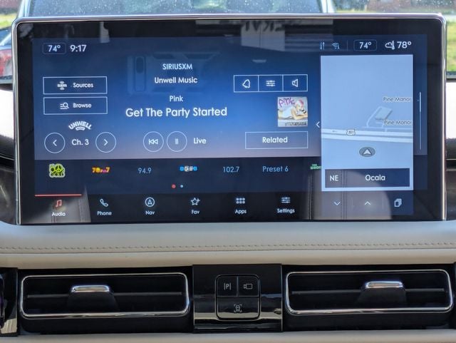 THIS VEHICLE INCLUDES THE FOLLOWING FEATURES AND OPTIONS: Equipment Group 200A, Lincoln Signature Certification Certified, 10 Speakers, 3.80 Axle Ratio, 4-Wheel Disc Brakes, ABS brakes, Air Conditioning, Alexa Built-In, Alloy wheels, AM/FM radio: SiriusXM with 360L, Auto High-beam Headlights, Auto tilt-away steering wheel, Auto-dimming door mirrors, Auto-dimming Rear-View mirror, Automatic temperature control, Brake assist, Bumpers: body-color, Compass, Delay-off headlights, Driver door bin, Driver vanity mirror, Dual front impact airbags, Dual front side impact airbags, Electronic Stability Control, Emergency communication system: 911 Assist, Four wheel independent suspension, Front anti-roll bar, Front Bucket Seats, Front Center Armrest w/Storage, Front dual zone A/C, Front reading lights, Fully automatic headlights, Garage door transmitter: HomeLink, Heated door mirrors, Heated front seats, Heated rear seats, Heated steering wheel, Illuminated entry, Knee airbag, Leather steering wheel, Low tire pressure warning, Memory seat, Navigation System, Occupant sensing airbag, Outside temperature display, Overhead airbag, Overhead console, Panic alarm, Passenger door bin, Passenger vanity mirror, Power door mirrors, Power driver seat, Power Liftgate, Power moonroof: Panoramic Vista Roof, Power passenger seat, Power steering, Power windows, Prem Lthr-Trimmed Heated/Ventilated Captain Seats, Radio data system, Radio: AM/FM/HD Audio System, Rain sensing wipers, Rear anti-roll bar, Rear reading lights, Rear seat center armrest, Rear window defroster, Rear window wiper, Remote keyless entry, Satin Roof Rack Side Rails w/o Crossbars, Security system, Speed control, Speed-sensing steering, Speed-Sensitive Wipers, Split folding rear seat, Spoiler, Steering wheel memory, Steering wheel mounted A/C controls, Steering wheel mounted audio controls, SYNC 4 w/Enhanced Voice Recognition, Tachometer, Telescoping steering wheel, Tilt steering wheel, Traction control, Trip computer, Turn signal indicator mirrors, Variably intermittent wipers, Ventilated front seats, Wheels: 18 Premium Painted Bright Machined Alum, and Wheels: 20 Prem Painted Bright Machined Aluminum.