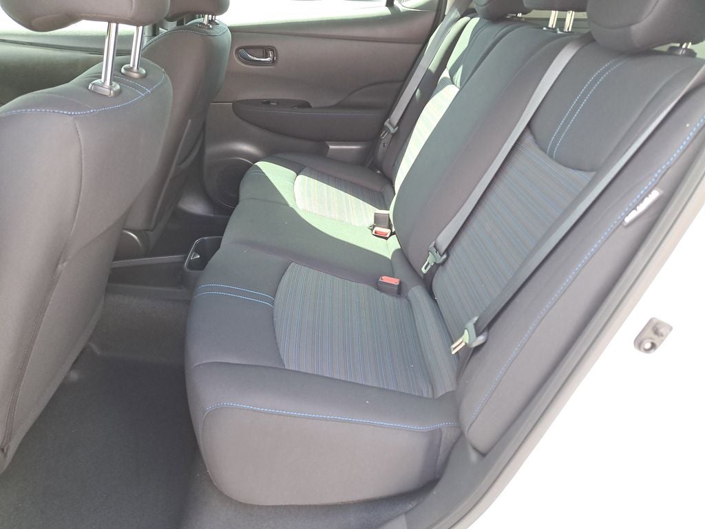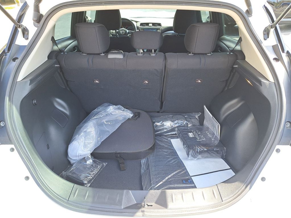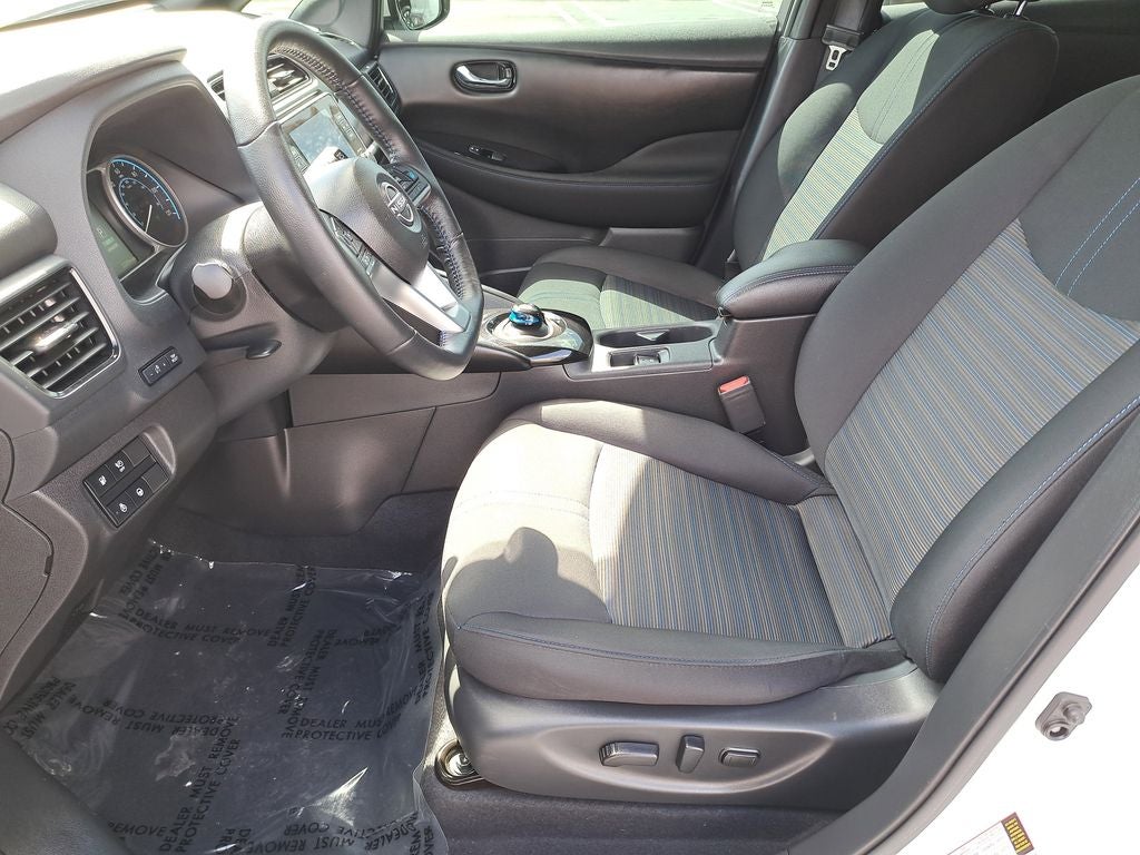 THIS VEHICLE HAS THE FOLLOWING FEATURES AND OPTIONS: Leaf SV Plus, Nissan Certified Certified, 4D Hatchback, Electric Motor, Single Speed Reducer, Pearl White Tricoat, Black Cloth, Auto High-beam Headlights, Auto-dimming Rear-View mirror, Front fog lights, Fully automatic headlights, Heated door mirrors, Heated front seats, NissanConnect featuring Apple CarPlay and Android Auto, NissanConnect Services Powered by SiriusXM, Power driver seat, Power steering, Power windows, Radio: NissanConnect EV w/Navigation/SiriusXM, Remote keyless entry, Siri Eyes Free, Steering wheel mounted audio controls, Wheels: 17 Machined Finish Aluminum Alloy, 4-Wheel Disc Brakes, 6 Speakers, ABS brakes, Air Conditioning, Alloy wheels, AM/FM radio: SiriusXM, Automatic temperature control, Brake assist, Bumpers: body-color, Cloth Seat Trim, Delay-off headlights, Driver door bin, Driver vanity mirror, Dual front impact airbags, Dual front side impact airbags, Electronic Stability Control, Emergency communication system, Floor Mats & Cargo Area Mat, Front anti-roll bar, Front Bucket Seats, Front Center Armrest, Front reading lights, Front wheel independent suspension, Heated Front Bucket Seats, Heated steering wheel, Illuminated entry, Kick Plates, Knee airbag, Leather steering wheel, Low tire pressure warning, Navigation system: NissanConnect EV w/Navigation and Services, Occupant sensing airbag, Outside temperature display, Overhead airbag, Overhead console, Panic alarm, Passenger door bin, Passenger vanity mirror, Power door mirrors, Radio data system, Rear anti-roll bar, Rear Cupholders & Stash Tray, Rear Parking Sensors, Rear side impact airbag, Rear window defroster, Rear window wiper, Safety Kit, Security system, Speed control, Speed-sensing steering, Splash Guards, Split folding rear seat, Spoiler, Telescoping steering wheel, Tilt steering wheel, Traction control, Trip computer, and Variably intermittent wipers.